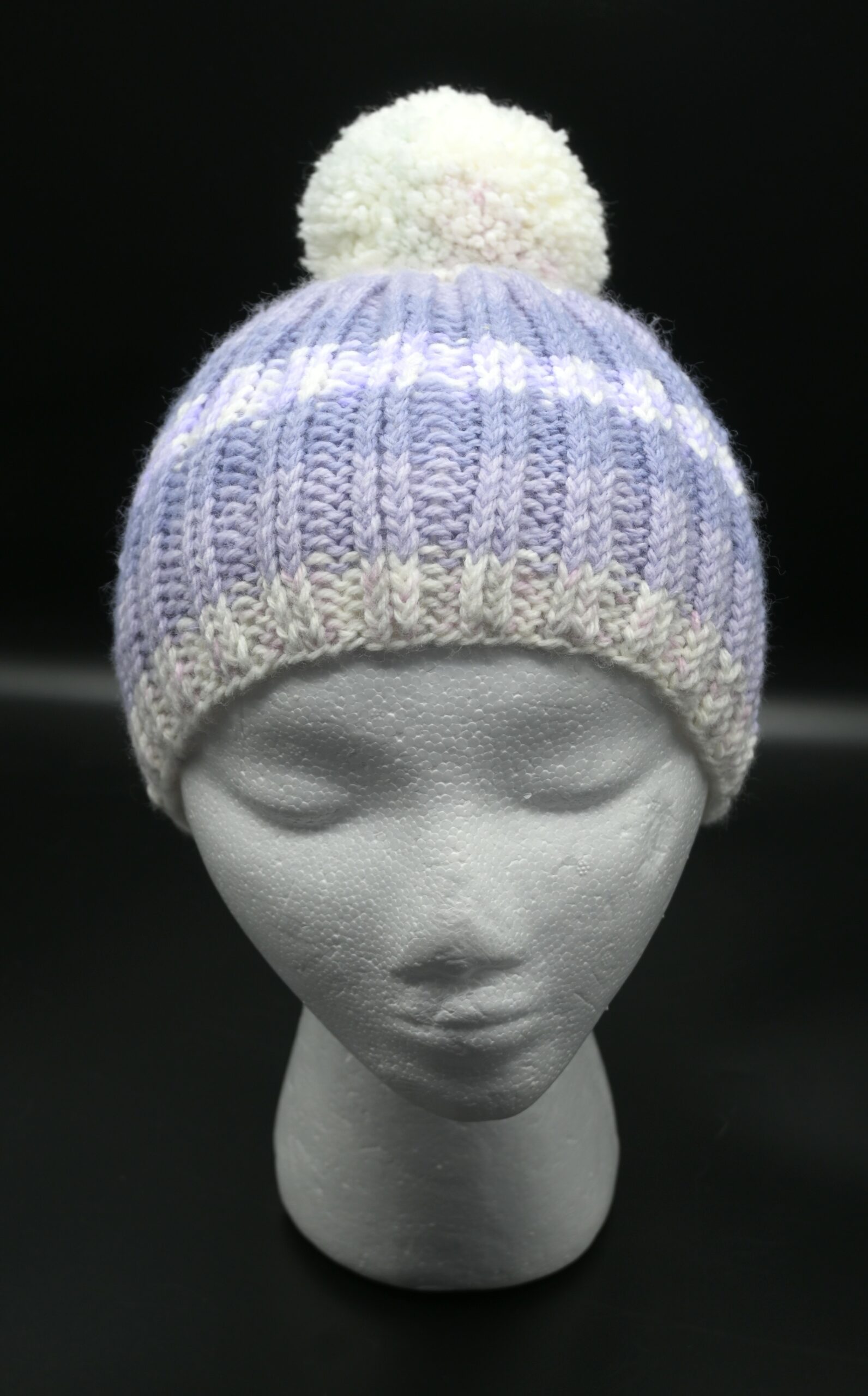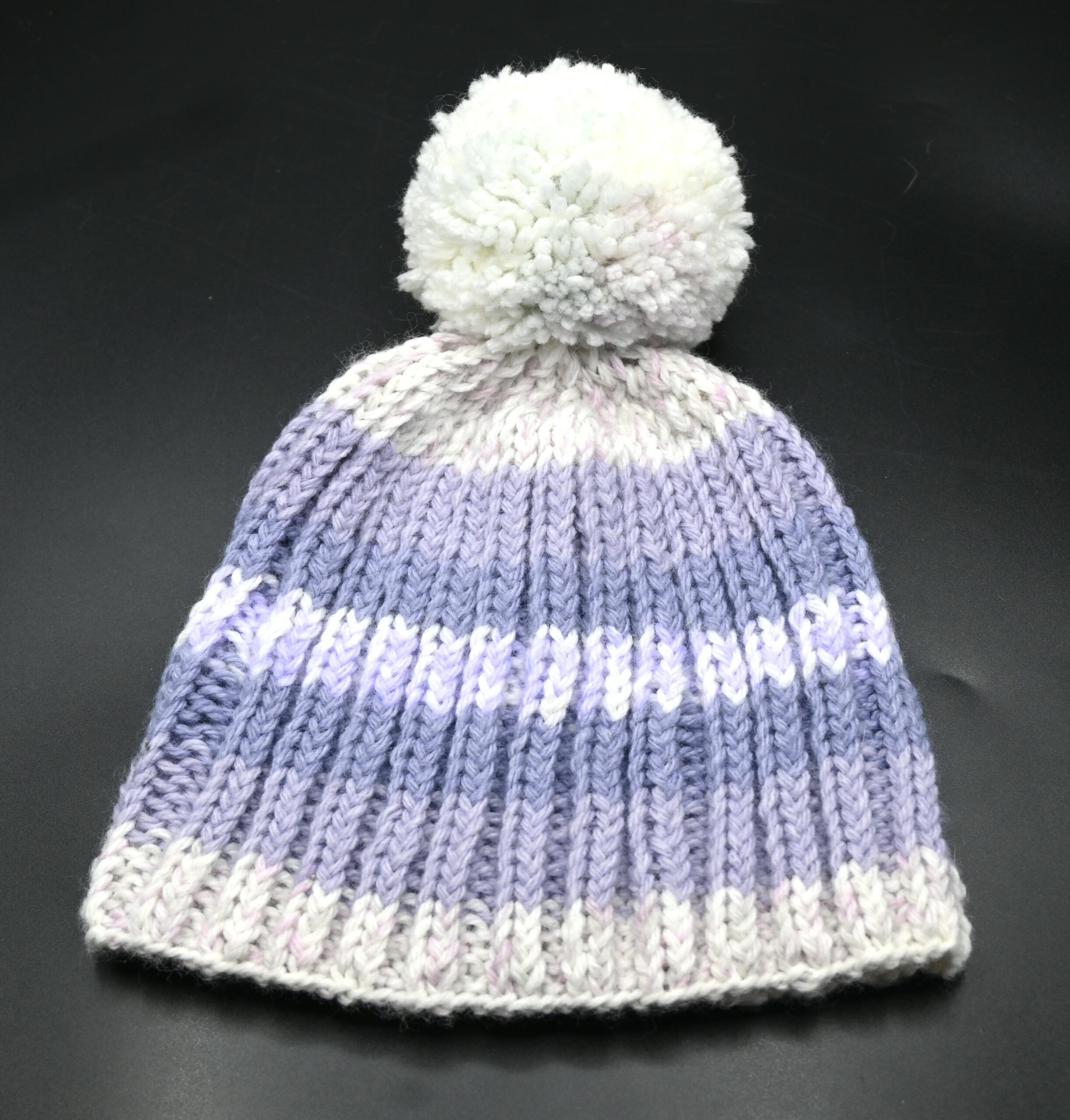 Bonnet pompon violet blanc