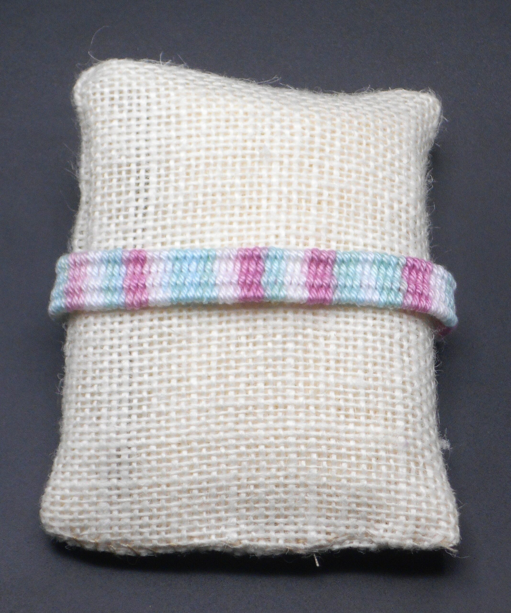 • Bracelet tissé fait main coton européen blanc, rose, vert d’eau