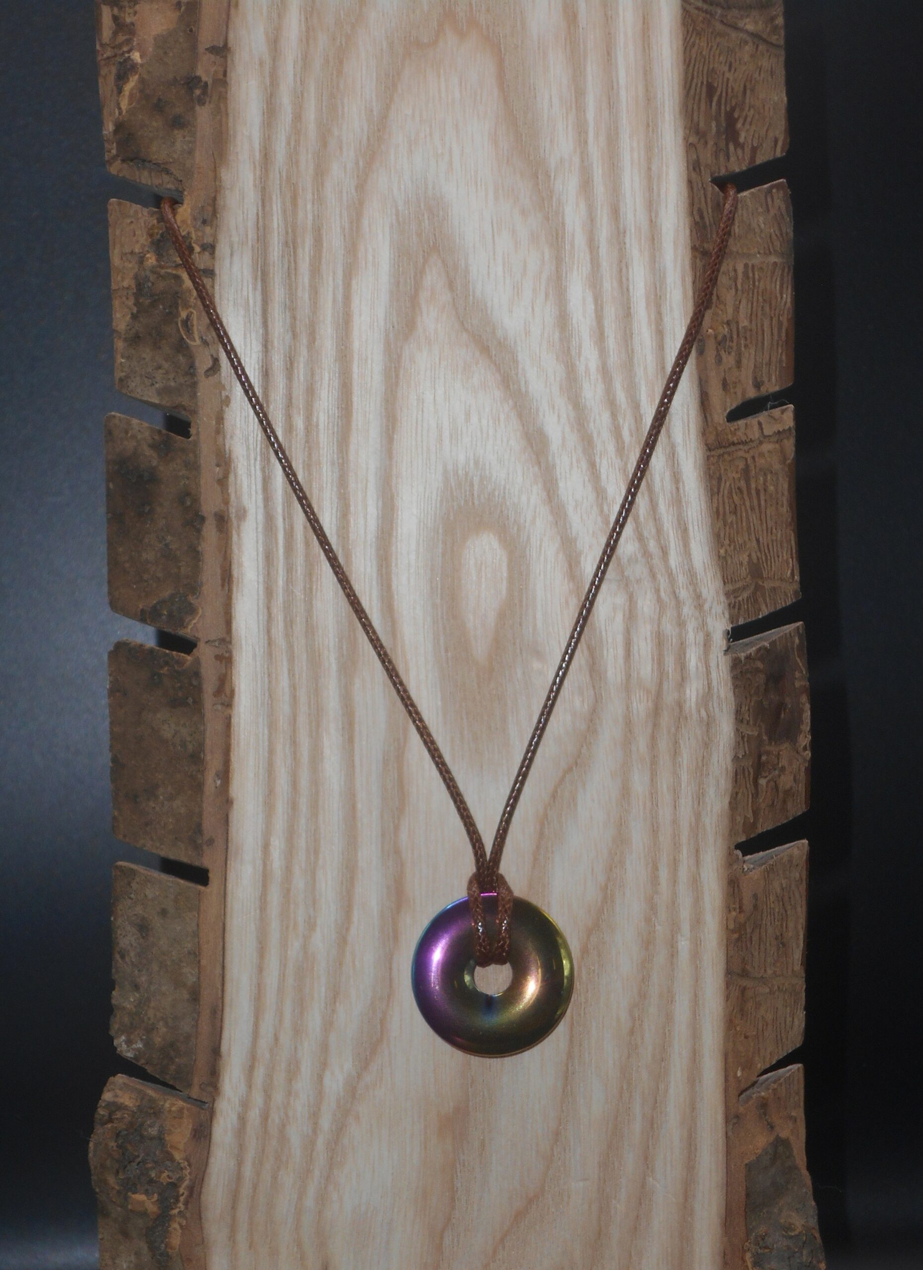 • Cordon ciré marron 2 mm, longueur 40 cm avec petite chainette 3 cm