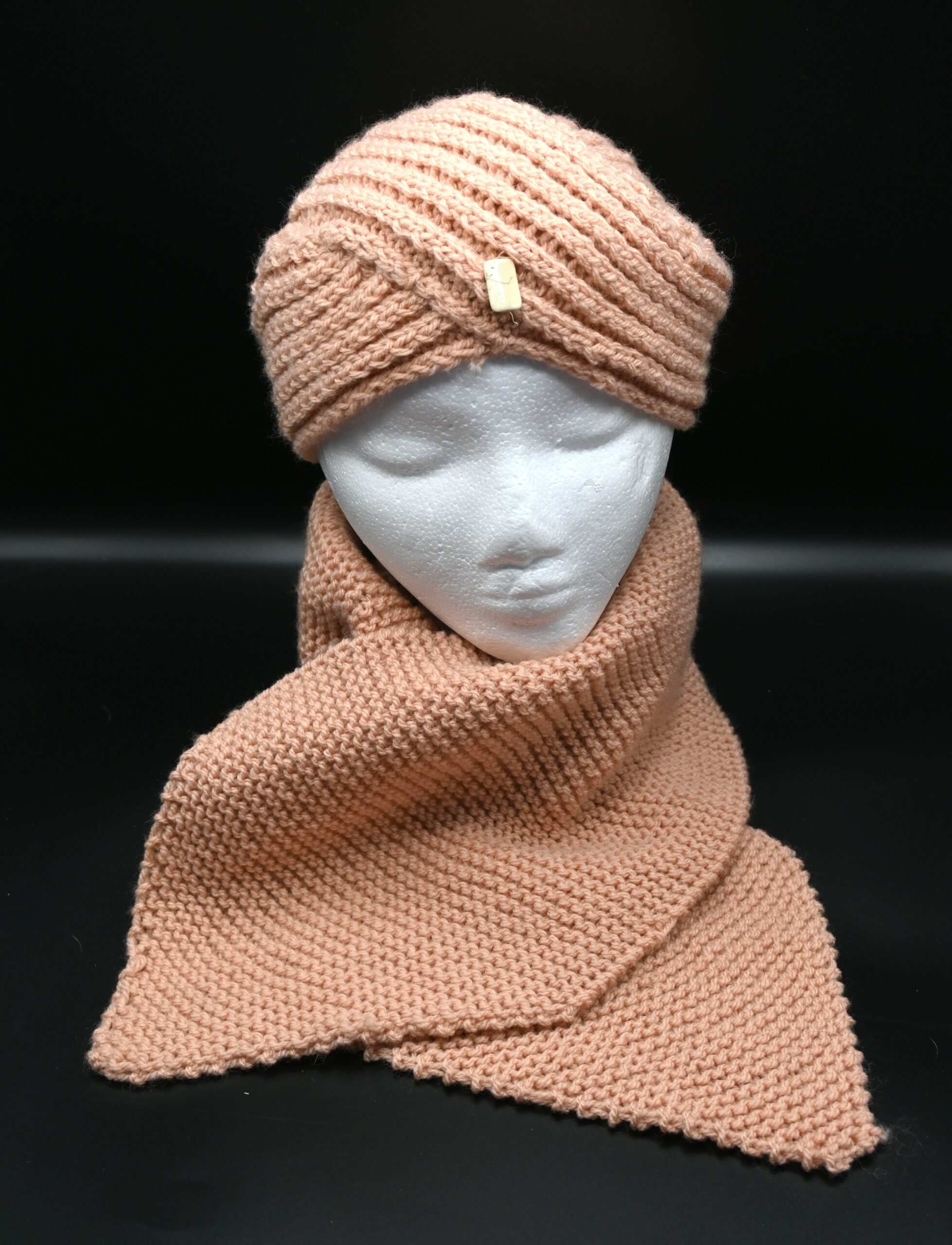 Lot : Écharpe / Bonnet turban vieux rose