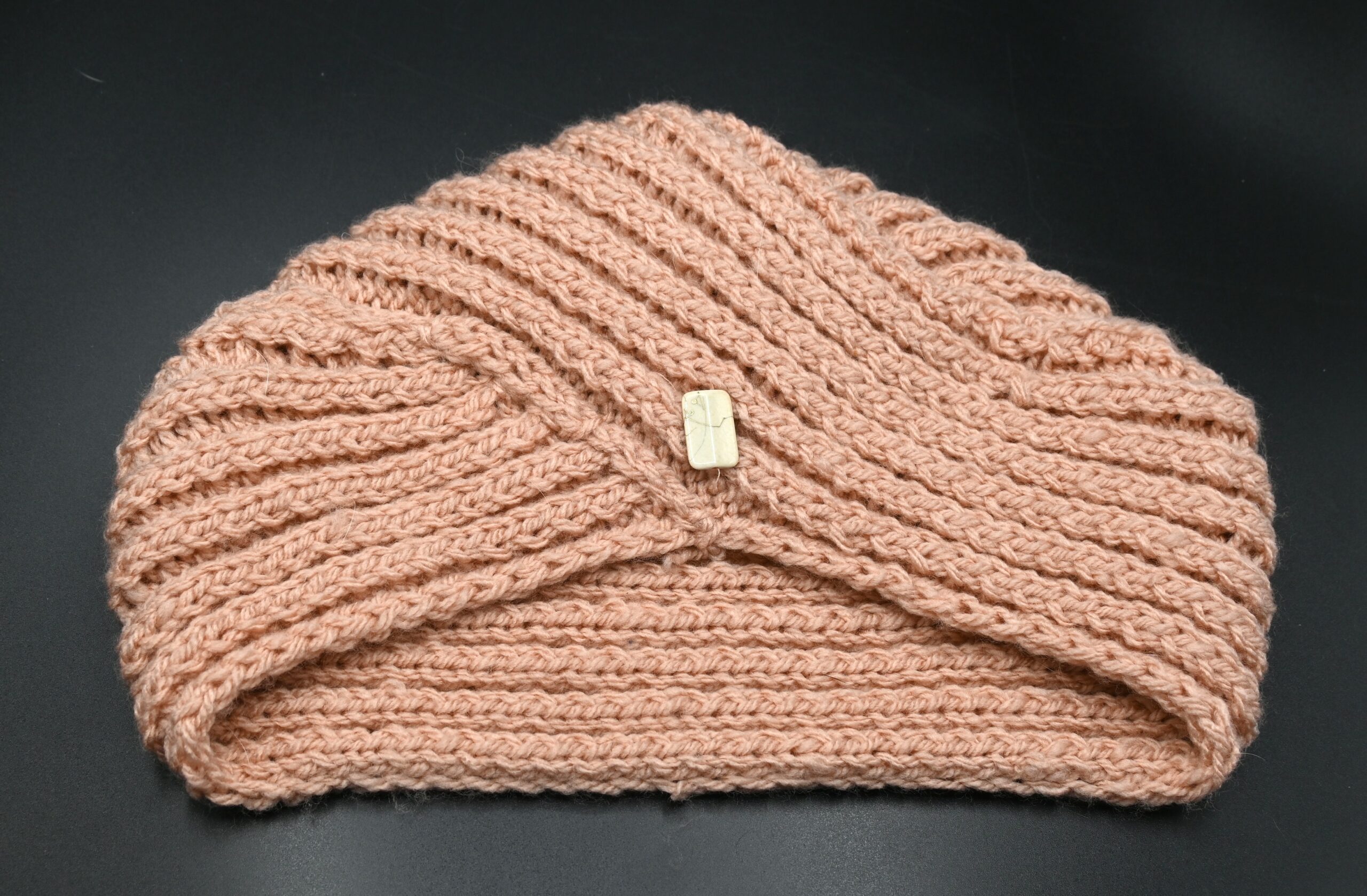 • Bonnet turban vieux rose avec perle plate 54 cm / 16 cm