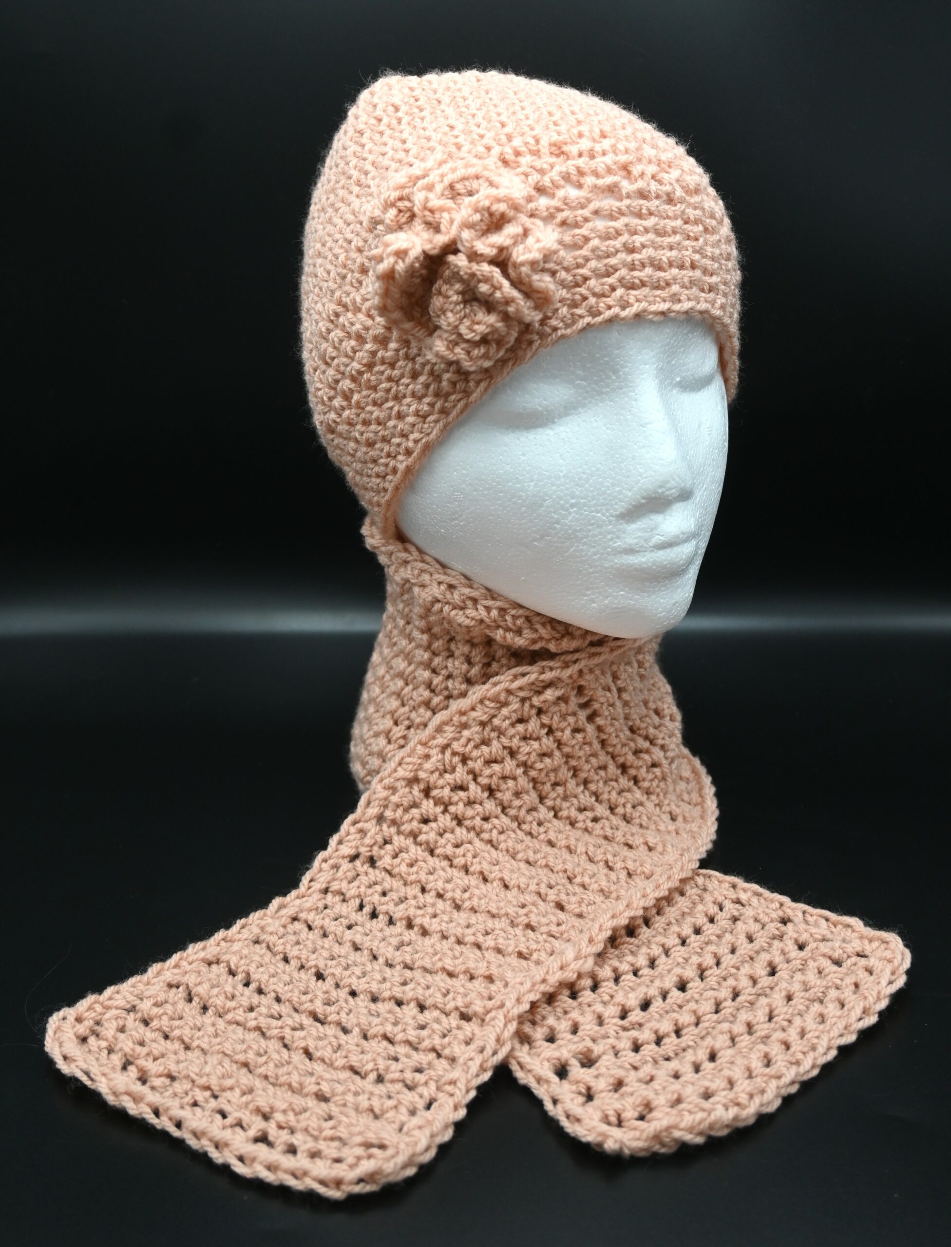 • Bonnet avec fleur vieux rose 56 cm / 18 cm